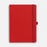 Ежедневник с твердой обложкой без поролона, выполнен из материала Soft Touch Ultra, красный РР, дополнен резинкой шириной 1 см, петлей-резинкой для ручки, капталом и ляссе красного цвета.