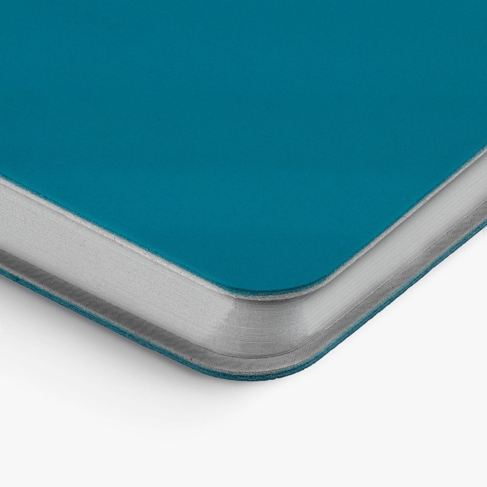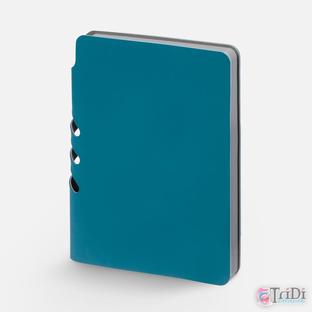 Ежедневник с гибкой обложкой выполнен из материала Soft Touch, цвет морской волны II и серого Latte (внутренняя часть обложки). Внутри корешка — специальное место для крепления ручки размером до 15х0,9 см.