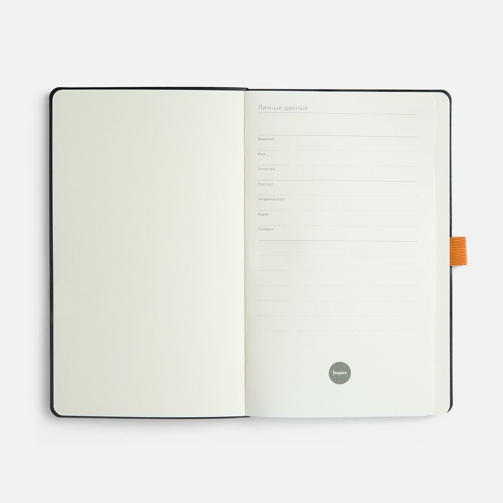 Ежедневник с гибкой обложкой, выполнен из материала Espresso, дополнен цветными ляссе и петлей-резинкой для ручки.