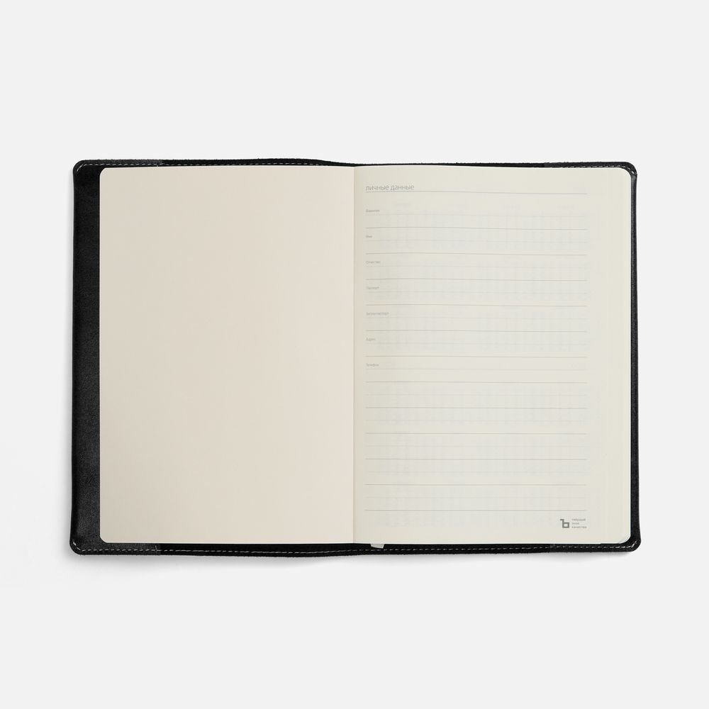 Ежедневник в мягкой суперобложке из натуральной кожи. Дополнен ляссе кремового цвета. Упакован в индивидуальную коробку.Блок 986: недатированный.Кол-во страниц — 256;Бумага — тонированная, плотность 70 г/м?;Форзац и нахзац — тонированные.