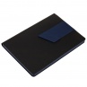 Ежедневник с гибкой обложкой, выполнен из материала Soft Touch, черный АА, дополнен петлей для ручки из материала Nice Touch, синий НН и цветным ляссе. Блок 985, без календарной сетки и информационного блока:Кол-во страниц — 256;Бумага — белая, плотность 70 г/м?;Форзац и нахзац — синие;Обрез блока — синий.