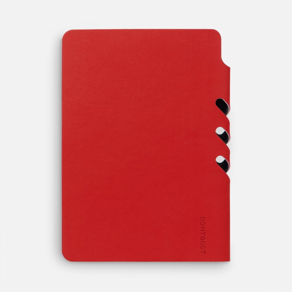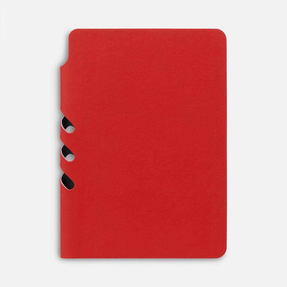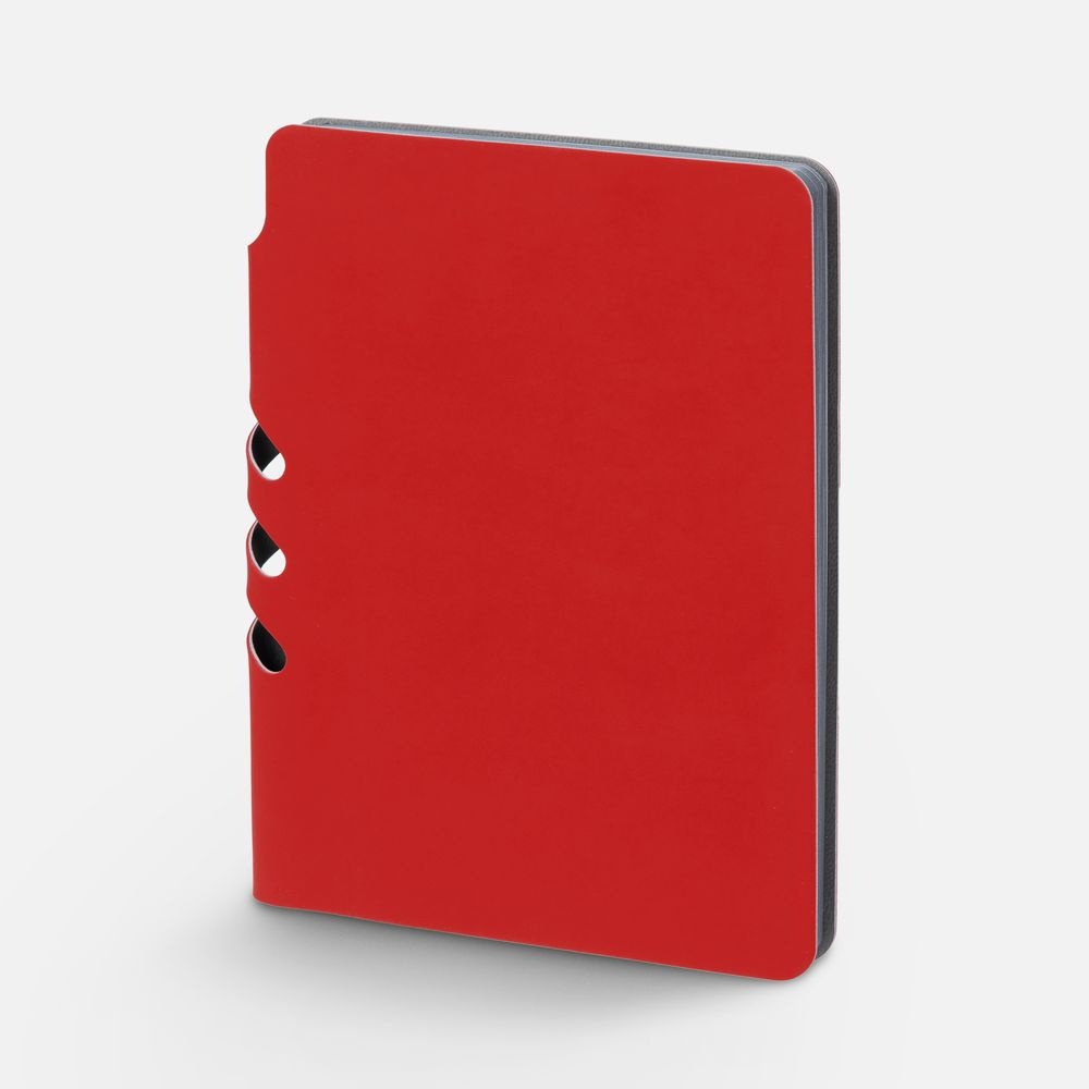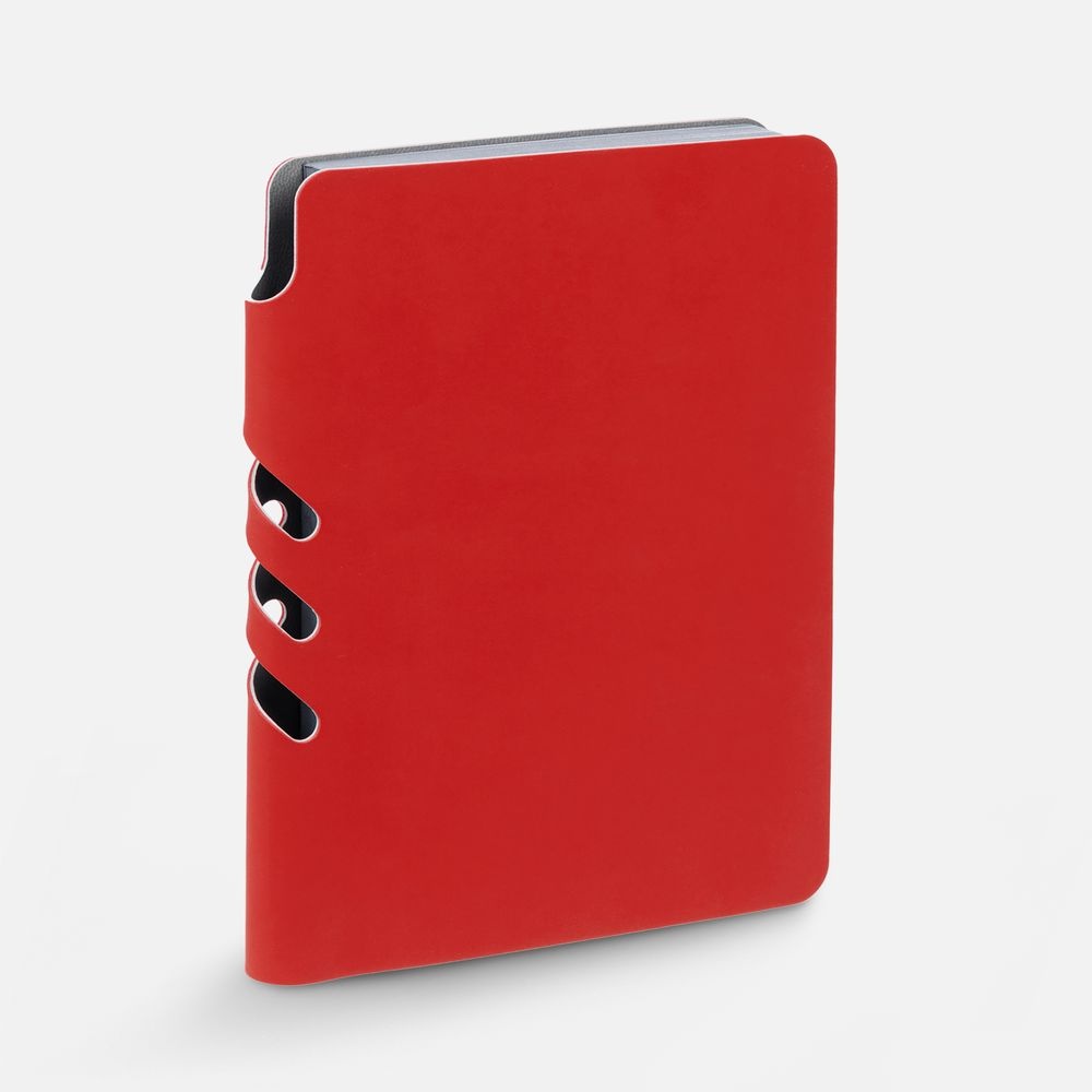 Ежедневник с гибкой обложкой выполнен из материала Soft Touch Ultra, красный РР и серого Latte (внутренняя часть обложки). Внутри корешка — специальное место для крепления ручки размером до 15х0,9 см.