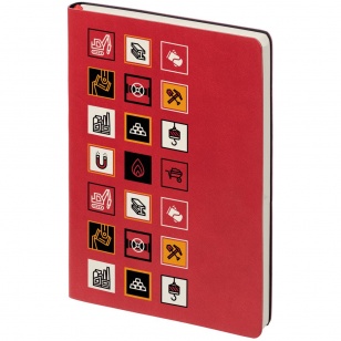 Работа металлурга — это целый калейдоскоп событий и важных, трудоемких задач. Для достижения высоких результатов требуется все держать под контролем, поэтому важно всегда иметь под рукой самое необходимое. Ежедневник Industry — идеальное решение для корпоративного подарка работникам сферы металлургии.В каждой части общего рисунка изображены главные символы металлургической промышленности.Ежедневник с гибкой обложкой, выполнен из материала Latte, красный, дополнен ляссе в цвет обложки.Блок недатированный, без календарной сетки:Кол-во страниц — 256;Бумага — белая, плотность 70 г/м?;Форзац и нахзац — белого цвета.