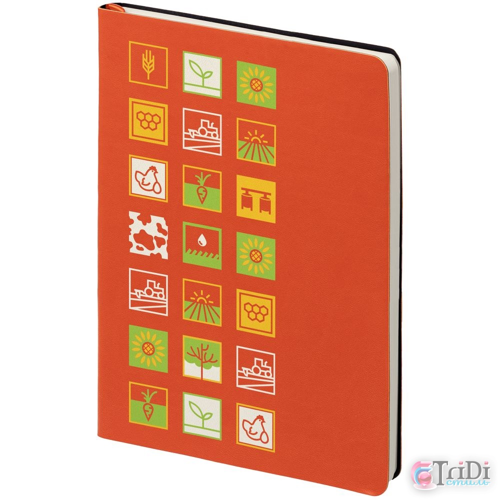 Работа в сельскохозяйственной отрасли — это целый калейдоскоп событий и важных, трудоемких задач. Для достижения высоких результатов требуется все держать под контролем, поэтому важно всегда иметь под рукой самое необходимое. Ежедневник Industry — идеальное решение для корпоративного подарка работникам этой сферы деятельности.В каждой части общего рисунка изображены главные сельскохозяйственные символы.Ежедневник с гибкой обложкой, выполнен из материала Latte, оранжевый, дополнен ляссе в цвет обложки.Блок недатированный, без календарной сетки:Кол-во страниц — 256;Бумага — белая, плотность 70 г/м?;Форзац и нахзац — белого цвета.
