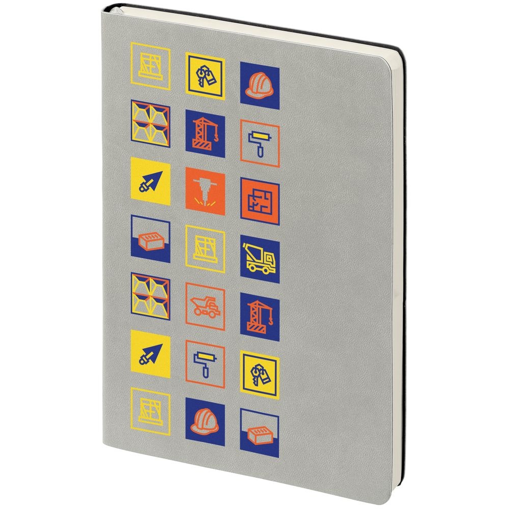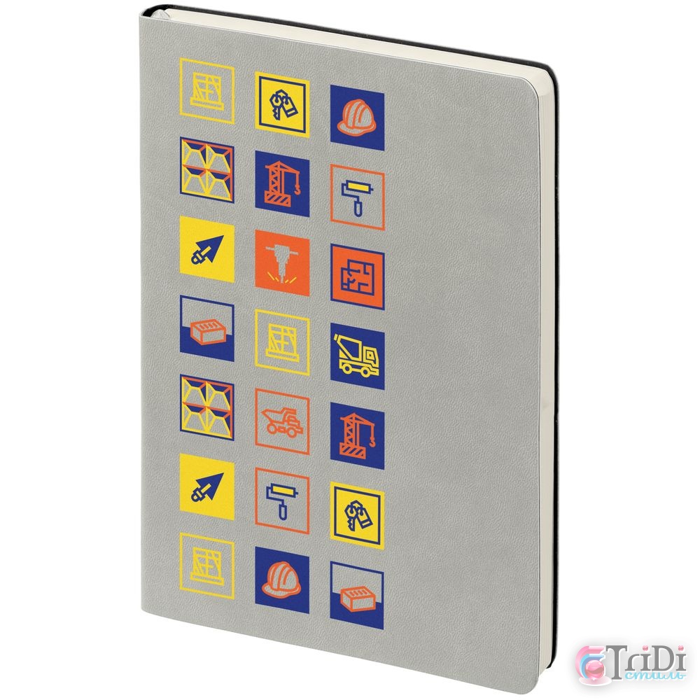 Работа строителя — это целый калейдоскоп событий и важных, трудоемких задач. Для достижения высоких результатов требуется все держать под контролем, поэтому важно всегда иметь под рукой самое необходимое. Ежедневник Industry — идеальное решение для корпоративного подарка работникам сферы строительства.В каждой части общего рисунка изображены главные символы строительной сферы.Ежедневник с гибкой обложкой, выполнен из материала Latte, серый, дополнен ляссе в цвет обложки.Блок недатированный, без календарной сетки:Кол-во страниц — 256;Бумага — белая, плотность 70 г/м?;Форзац и нахзац — белого цвета.