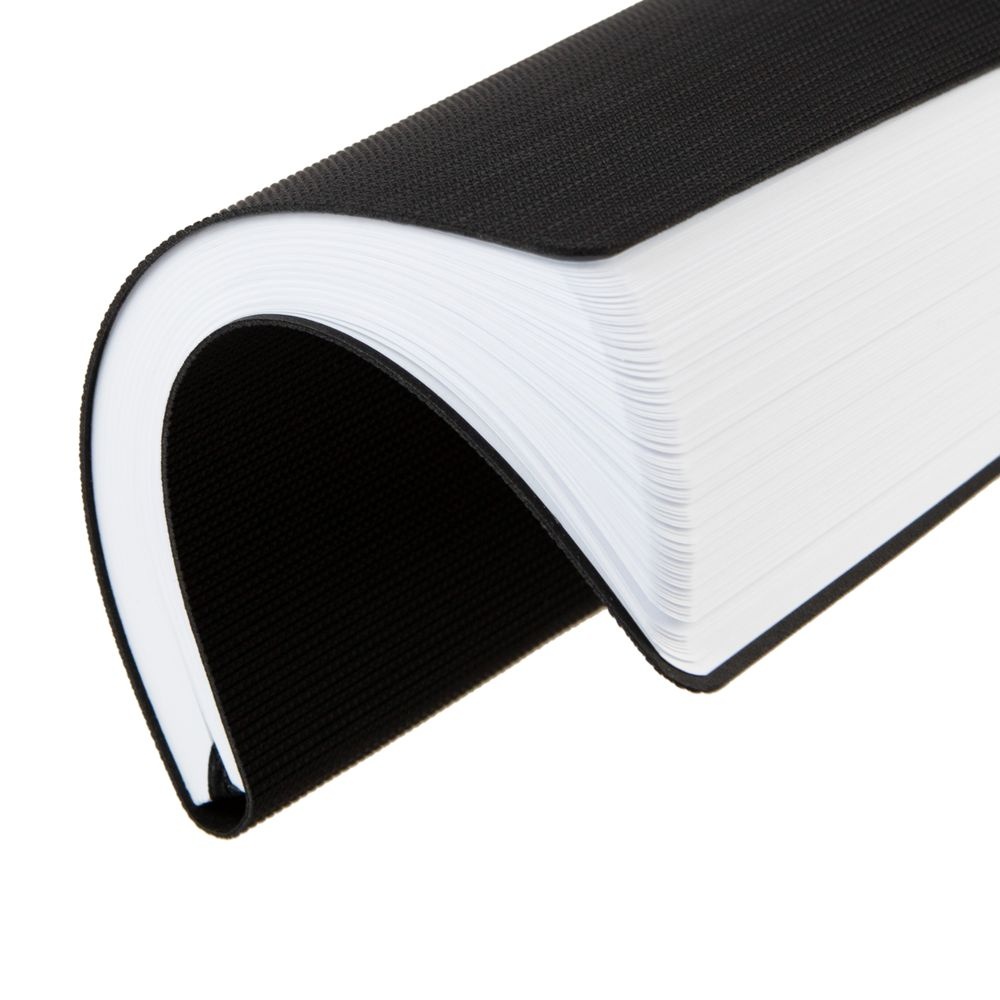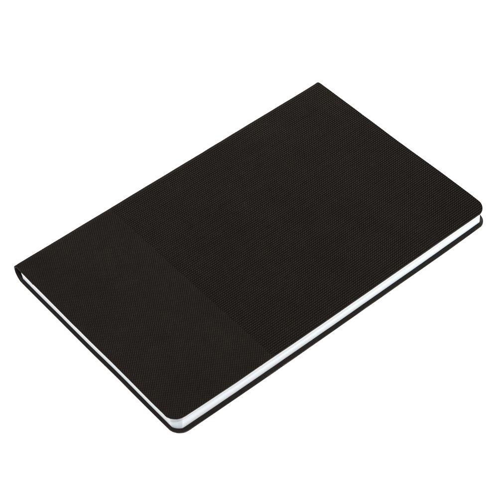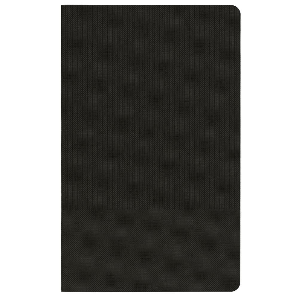 Ежедневник с гибкой обложкой, выполнен из материала Canyon, черный АА, дополнен ляссе в цвет обложки. Блинтовое тиснение на обложке создает эффект вязаного полотна.Блок 953, без календарной сетки и информационного блока:Кол-во страниц — 192;Бумага — белая, плотность 70 г/м?;Форзац и нахзац — белые.
