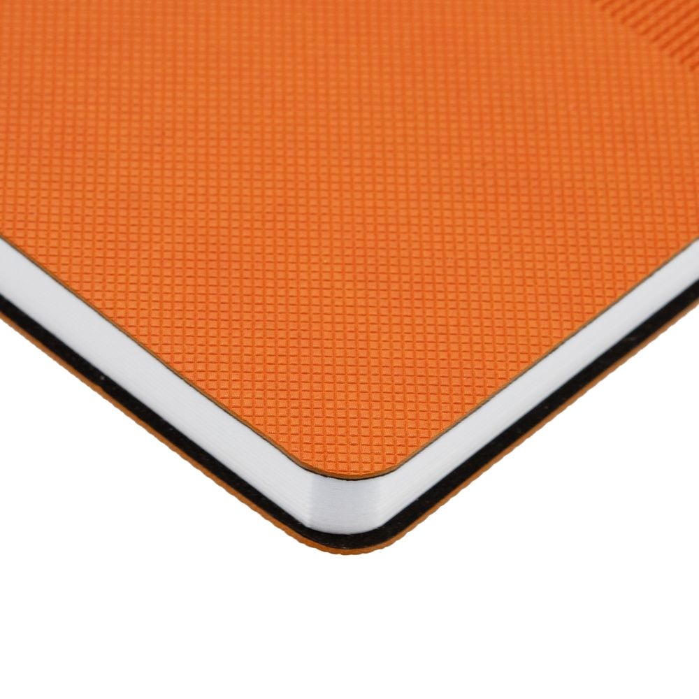 Ежедневник с гибкой обложкой, выполнен из материала Canyon, оранжевый ОО, дополнен ляссе в цвет обложки. Блинтовое тиснение на обложке создает эффект вязаного полотна.