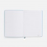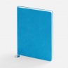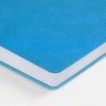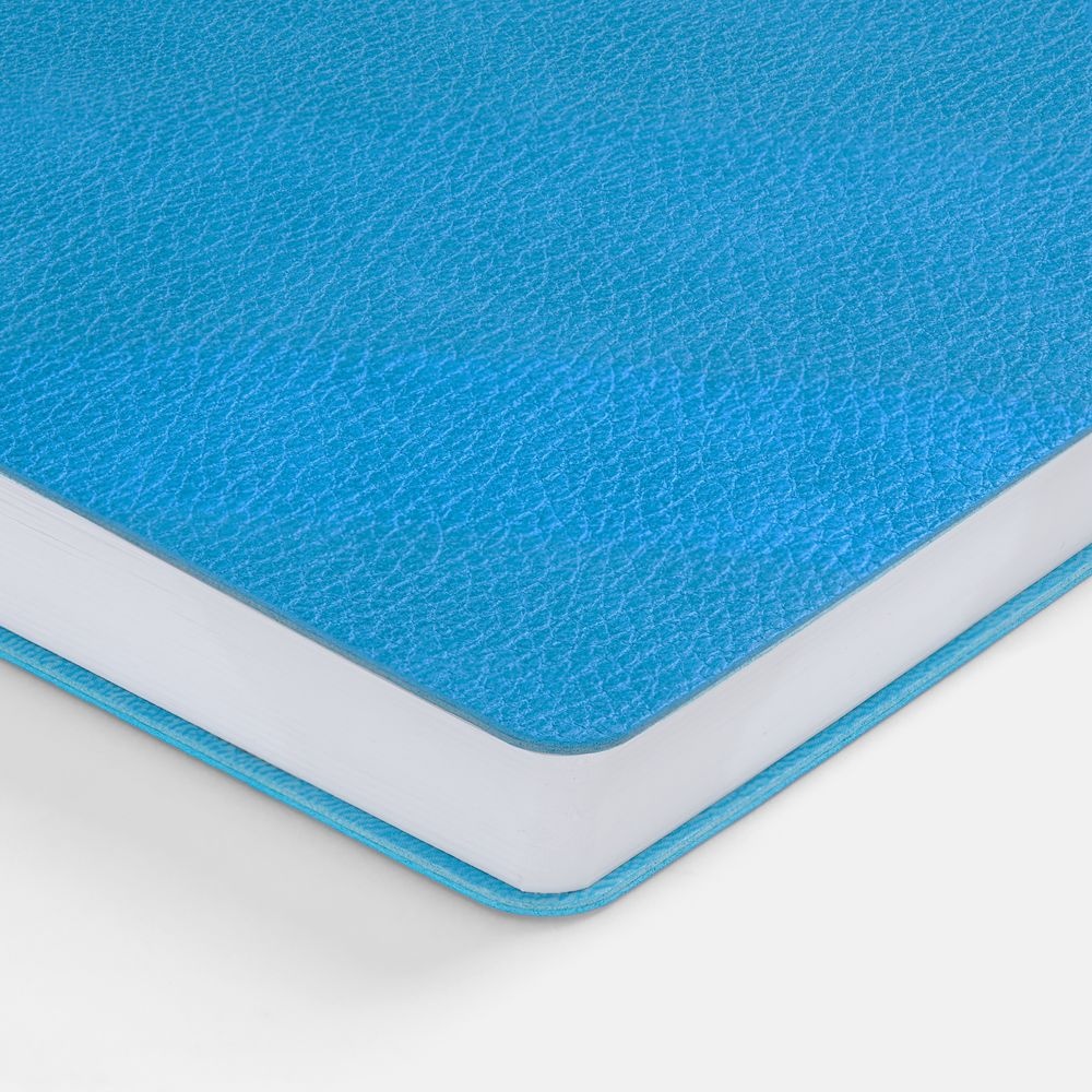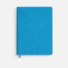 Ежедневник с гибкой обложкой, выполнен из материал La Fite, голубой JJ, дополнен ляссе в цвет обложки с металлическим шильдом.Блок 985, без календарной сетки и информационного блока:Кол-во страниц — 256;Бумага — белая, плотность 70 г/м?;Форзац и нахзац — белые.