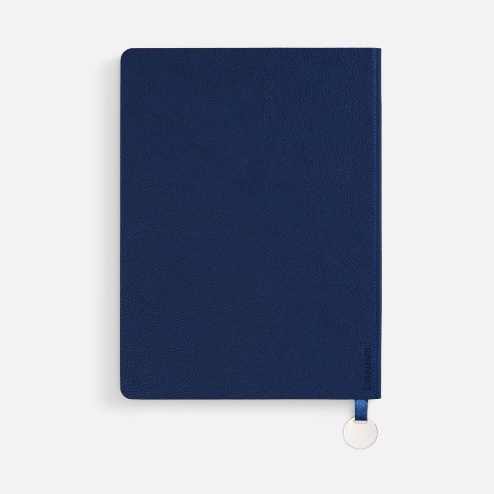 Ежедневник с гибкой обложкой, выполнен из материал La Fite, синий НН, дополнен ляссе в цвет обложки с металлическим шильдом.Блок 985, без календарной сетки и информационного блока:Кол-во страниц — 256;Бумага — белая, плотность 70 г/м?;Форзац и нахзац — белые.
