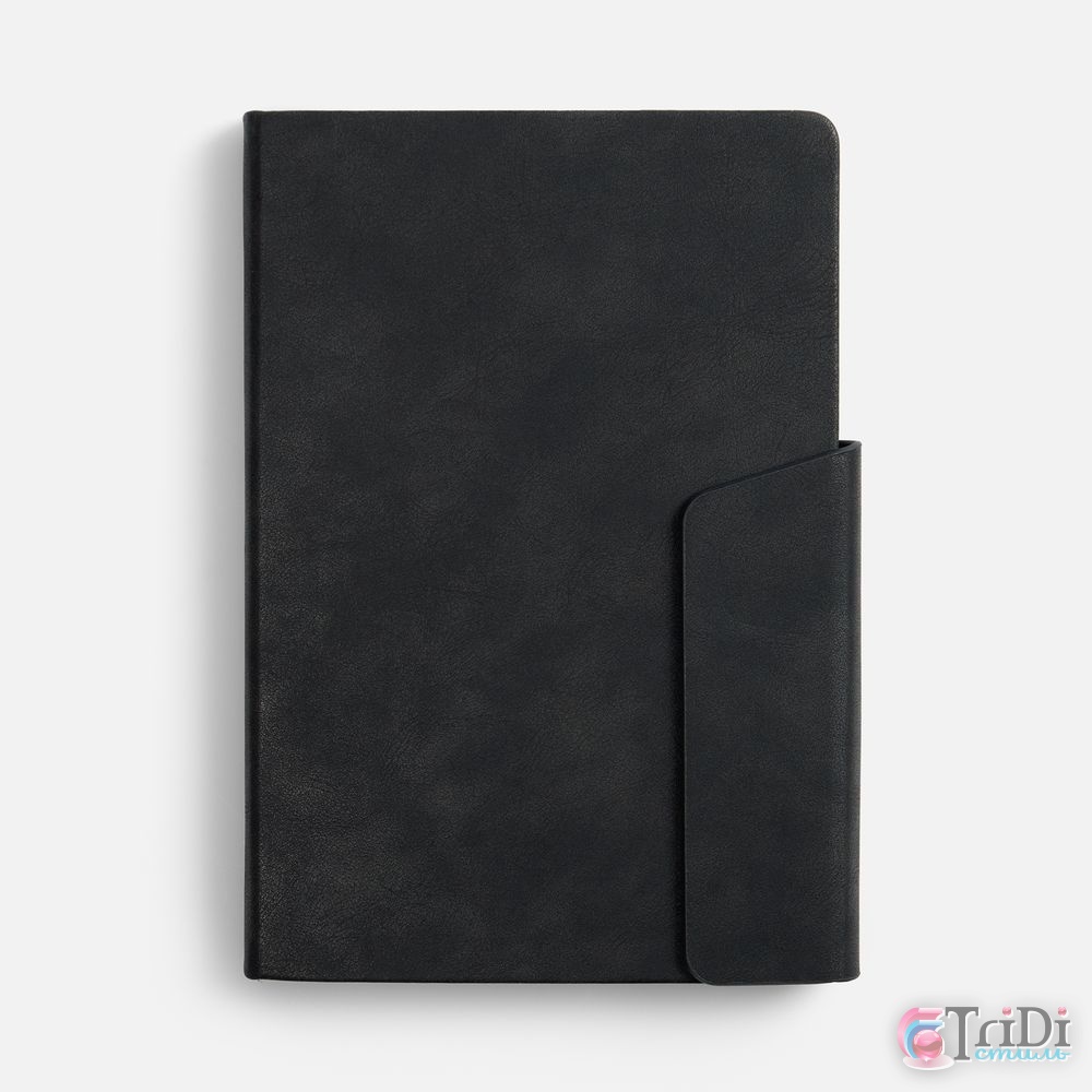Ежедневник с твердой обложкой и фигурным магнитным клапаном, дополнен капталом и двойным ляссе.