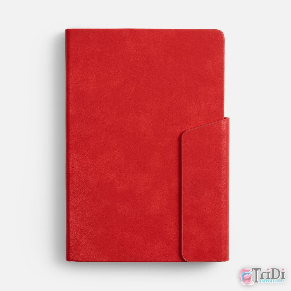 Ежедневник с твердой обложкой и фигурным магнитным клапаном, дополнен капталом и двойным ляссе.