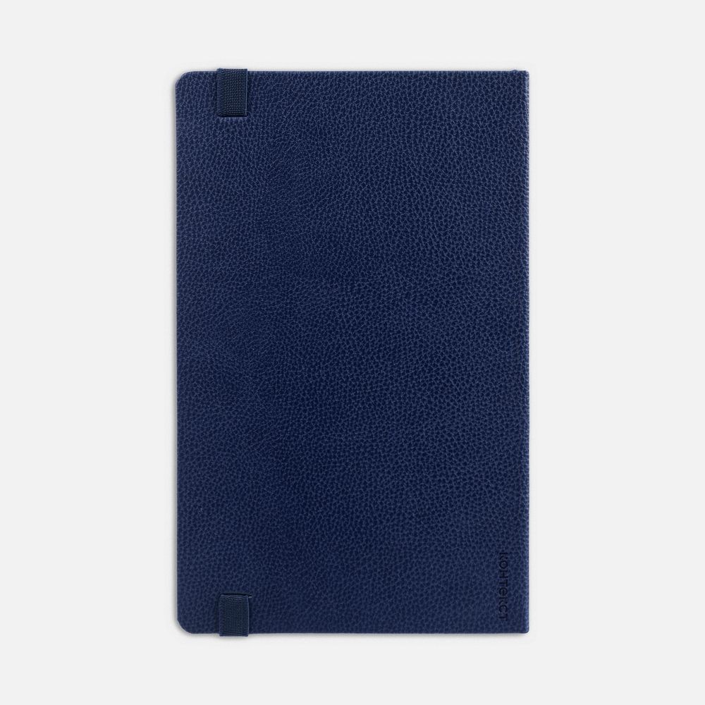 Ежедневник с твердой обложкой, выполнен из материала LaFite, темно-синий ХХ,дополнен резинкой с металлическим круглым шильдом и ляссе в цвет обложки.
