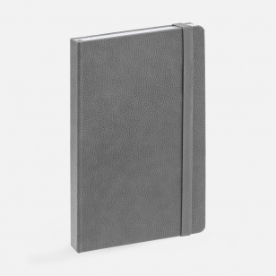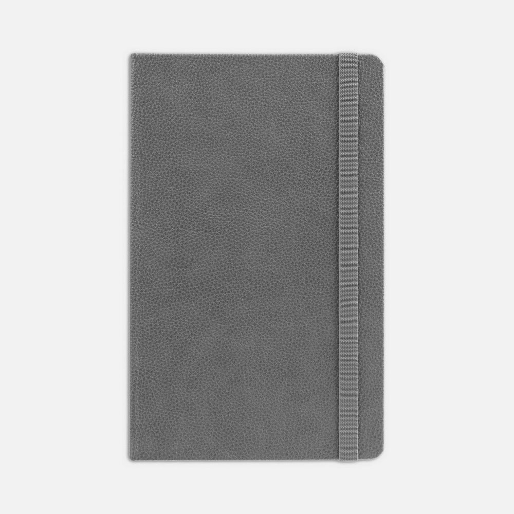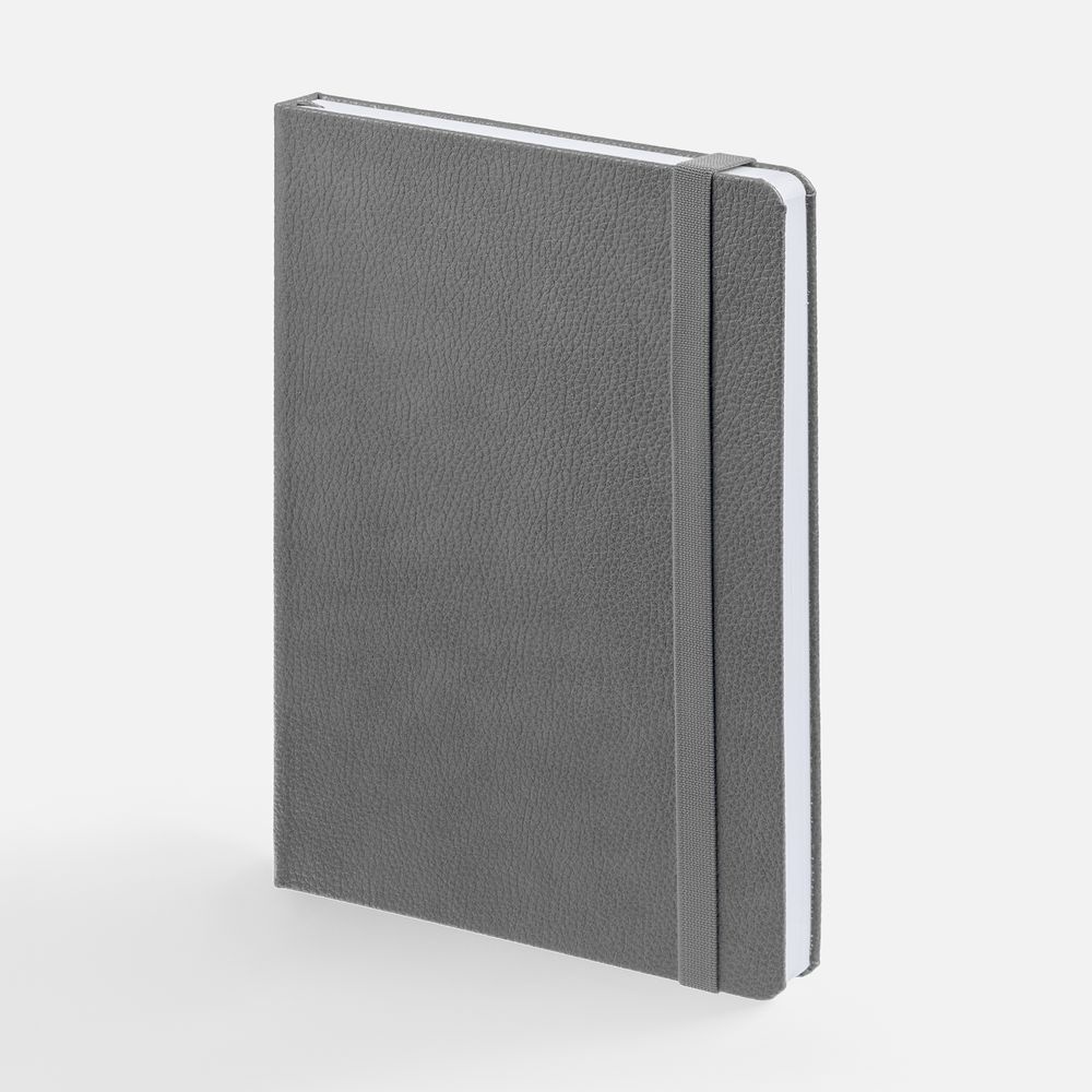 Ежедневник с твердой обложкой, выполнен из материала LaFite, серый СС, дополнен резинкой и ляссе в цвет обложки.