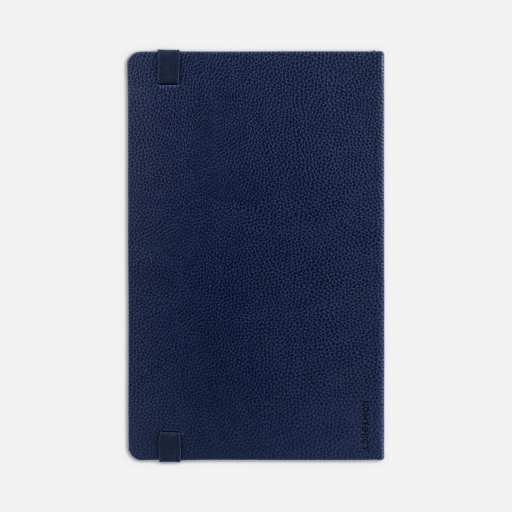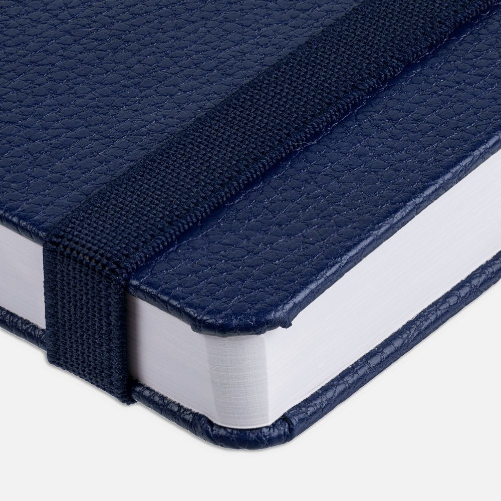Ежедневник с твердой обложкой, выполнен из материала LaFite, темно-синий ХХ, дополнен резинкой и ляссе в цвет обложки.