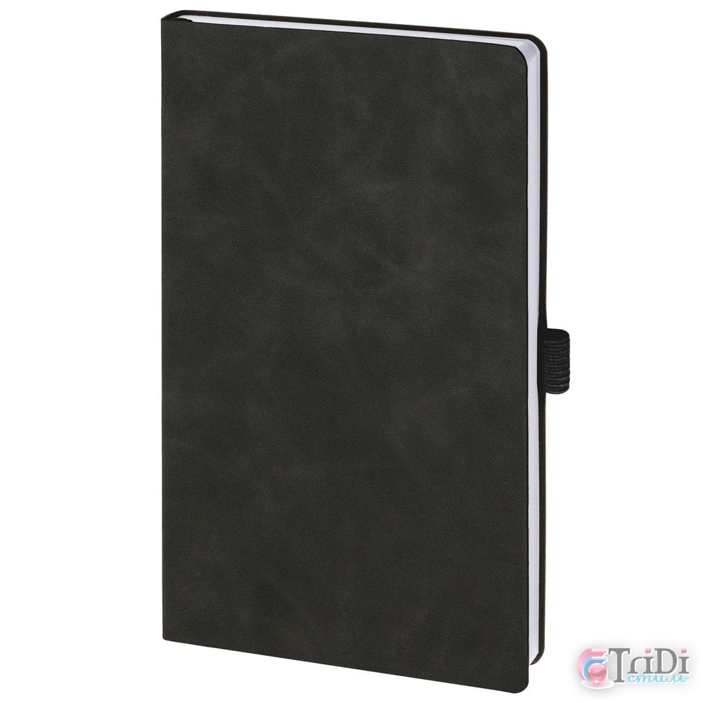 Ежедневник с гибкой обложкой, выполнен из материала Nubuck Touch, черный АА, дополнен ляссе и петлей-резинкой для ручки черного цвета.Блок 953, без календарной сетки и информационного блока:Кол-во страниц — 192;Бумага — белая, плотность 70 г/м?;Форзац и нахзац — белые.
