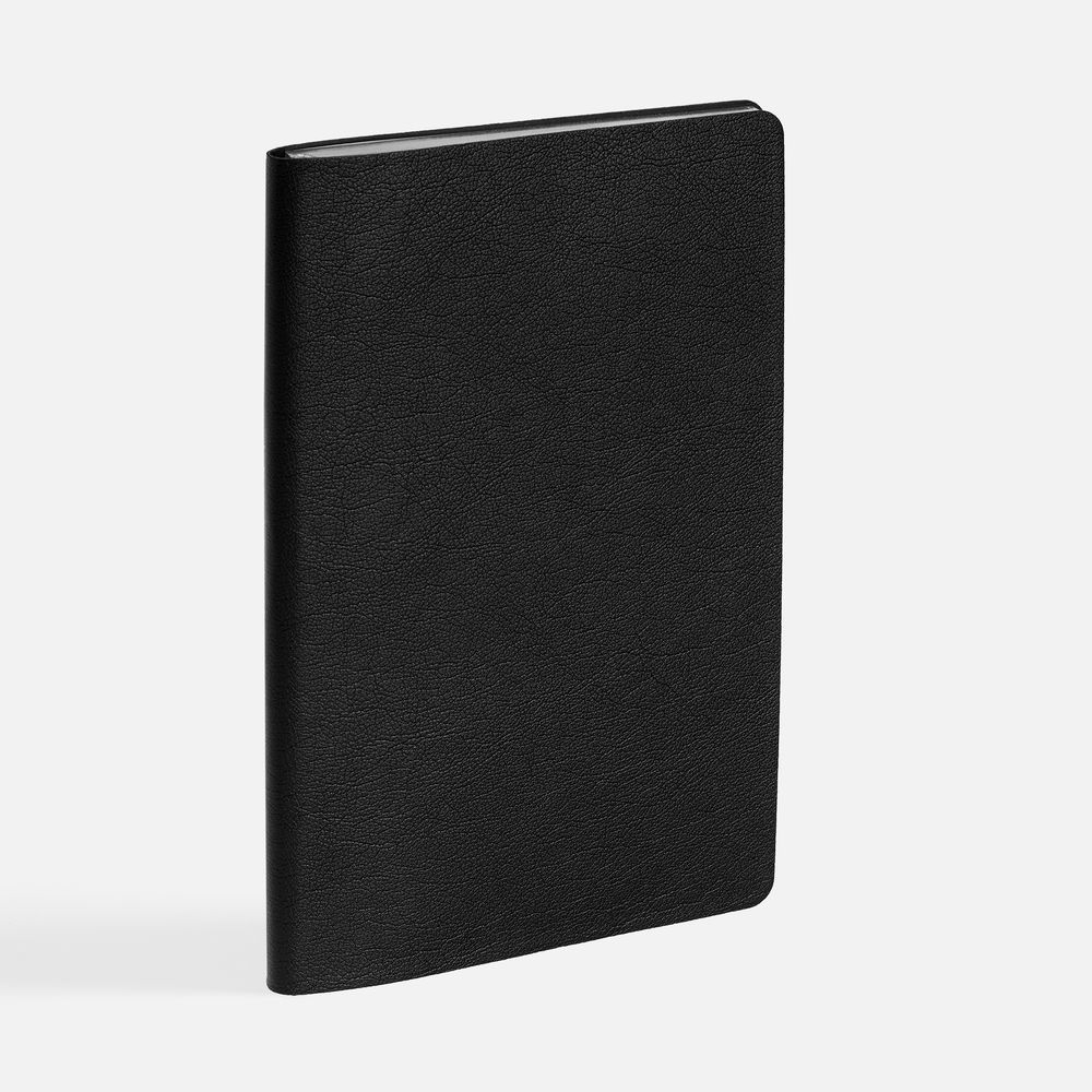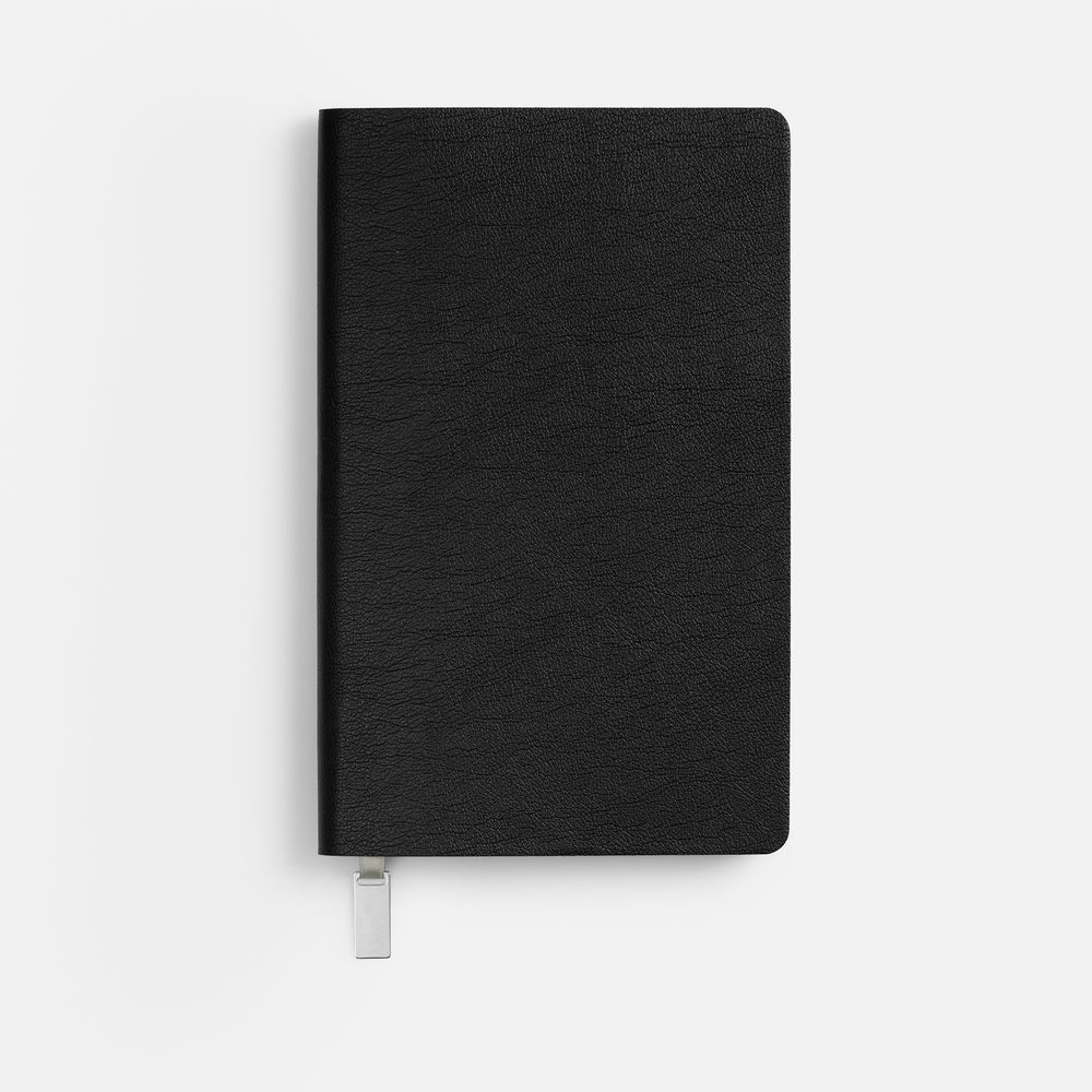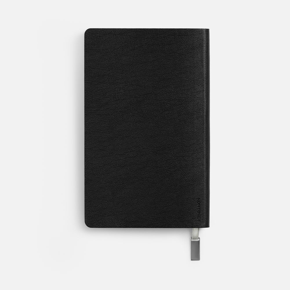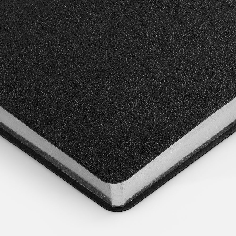 Ежедневник с гибкой обложкой, выполнен из материала Petrus, черный АА, дополнен серым ляссе с металлическим шильдиком.Блок 951, без календарной сетки и информационного блока: Кол-во страниц — 256;Бумага — белая, плотность 70 г/м?;Форзац и нахзац — белыеОбрез блока — серебристый.