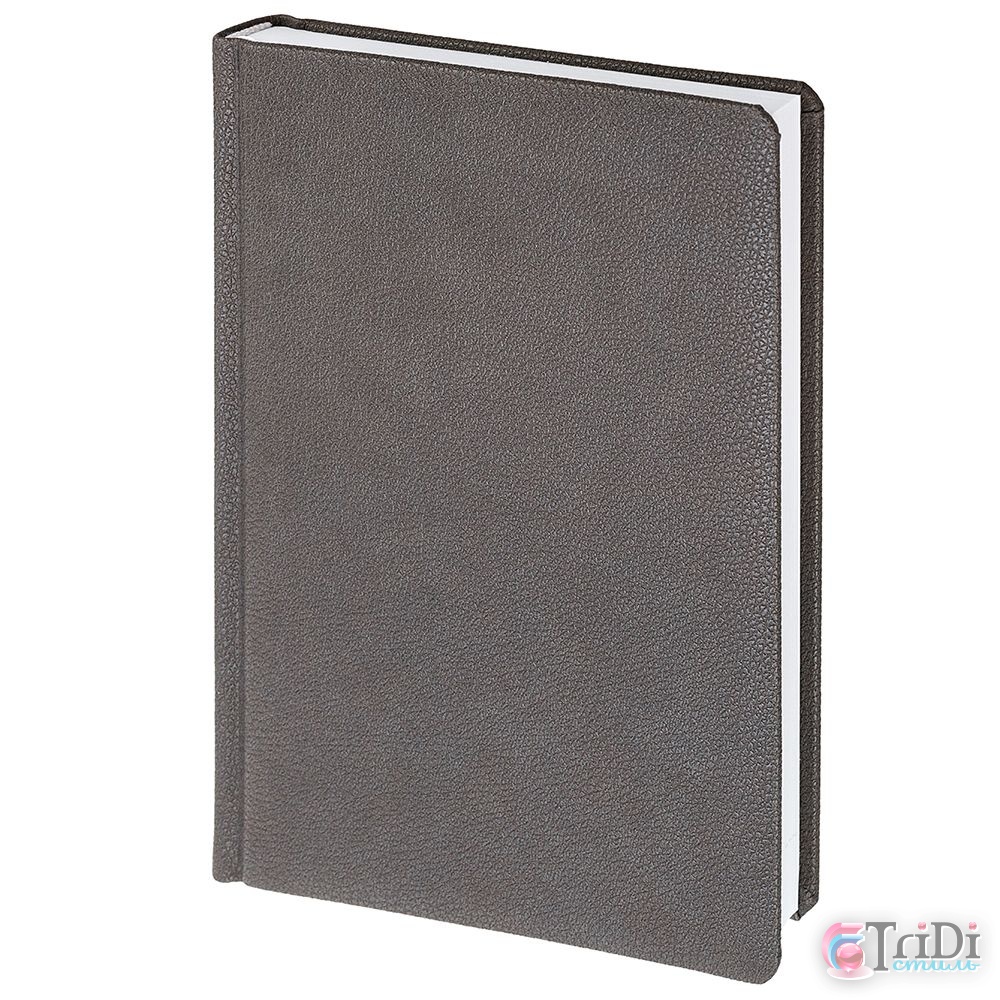 Ежедневник в твердой обложке c поролоном, выполнен из материала La Fite, темно-серый EE, дополнен ляссе белого цвета.