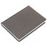 Ежедневник в твердой обложке c поролоном, выполнен из материала La Fite, темно-серый EE, дополнен ляссе серого цвета и прошивкой по периметру обложки.