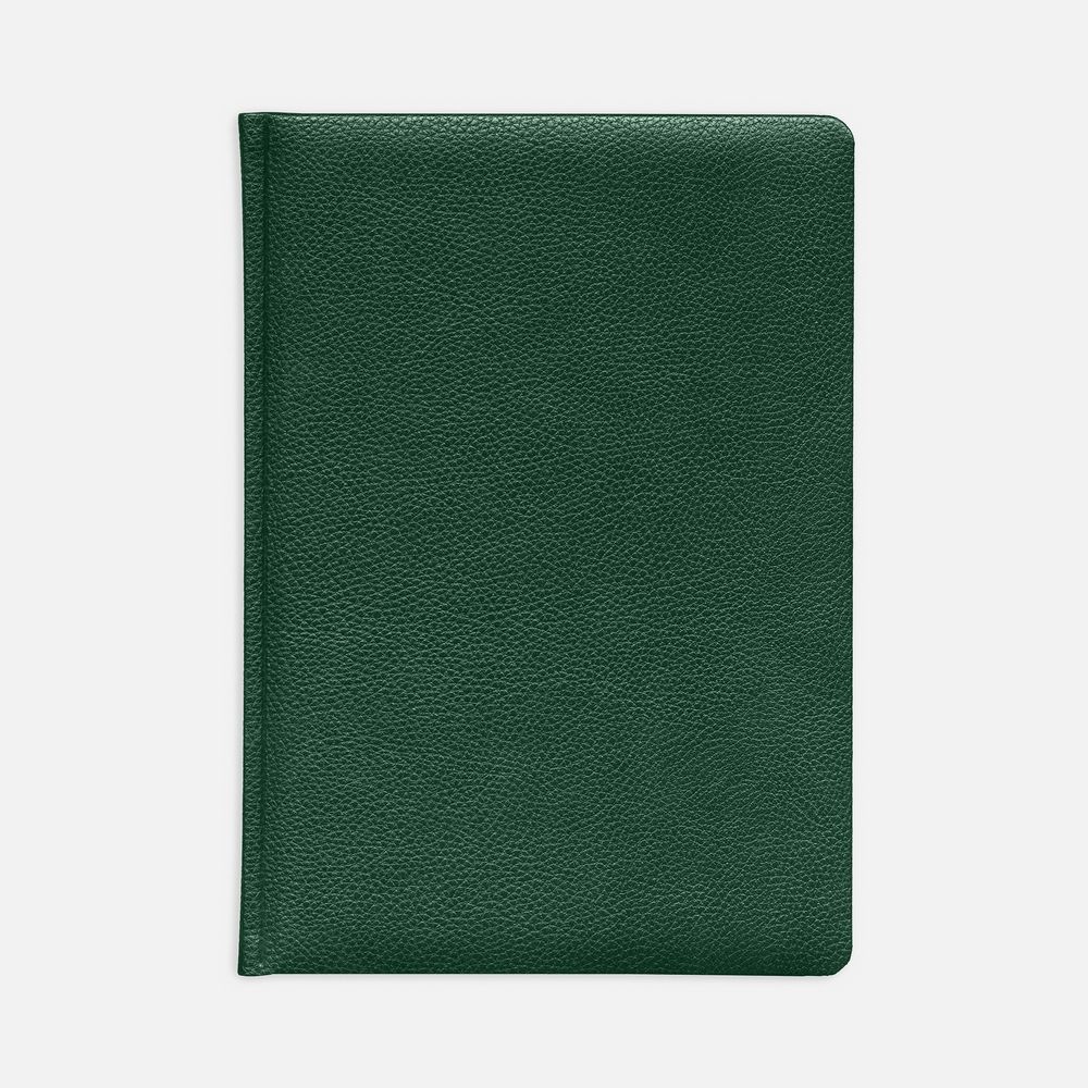 Ежедневник в твердой обложке c поролоном, выполнен из материала La Fite, зеленый FF, дополнен ляссе белого цвета.