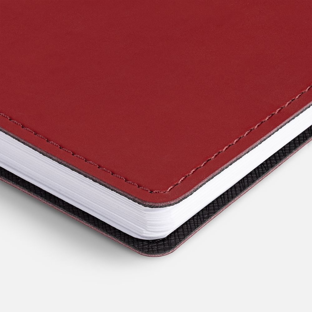 Ежедневник с гибкой обложкой, выполнен из материалов Soft Touch, красный РР и Nice Touch, черный АА.
