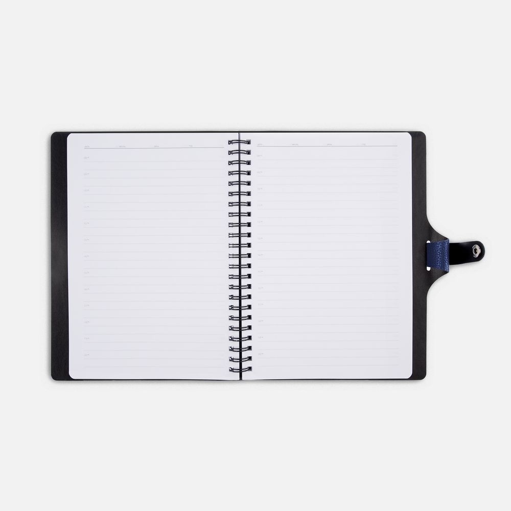 Ежедневник с гибкой обложкой, выполнен из материалов La Fite,темно-синий ХХ и Waltz черный АА.