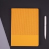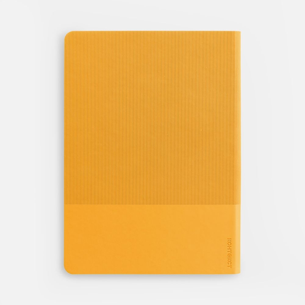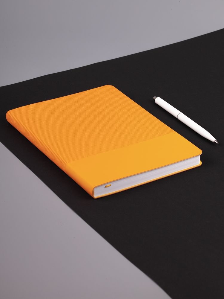Фактурное тиснение на обложке освежает вид классического ежедневника, а также дополнительно выделяет пространство внизу, словно специально оставленное для нанесения логотипа.Ежедневник с гибкой обложкой выполнен из материала Soft Touch, желтый KK и Latte, желтый (внутренний материал); дополнен ляссе желтого цвета и фактурным тиснением обложки.Блок 985, без информационного блока:Кол-во страниц — 256;Бумага — белая, плотность 70 г/м?;Форзац и нахзац — белые.