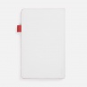 Гибкая обложка, материал обложки — Soft Touch, белый BB; внутренний материал — Latte красный РР; материал петли для ручки — Nice Touch Ultra, красный РР. Срез обложки окрашен в красный цвет.
