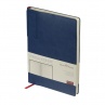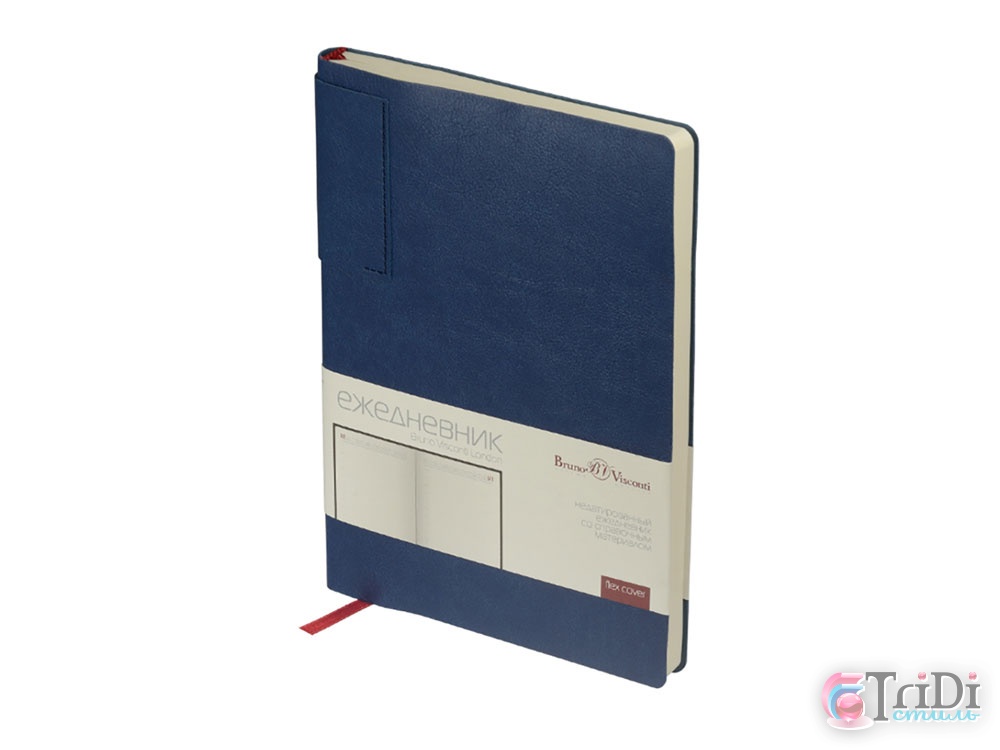 Лаконичная модель в ярком исполнении: гибкая обложка синего цвета с контрастной или в цвет обложки нашивкой. Выполнен из качественной и прочной искусственной кожи, крепление внутреннего блока - книжный переплет, закладка- ляссе. Углы обложки скруглены.