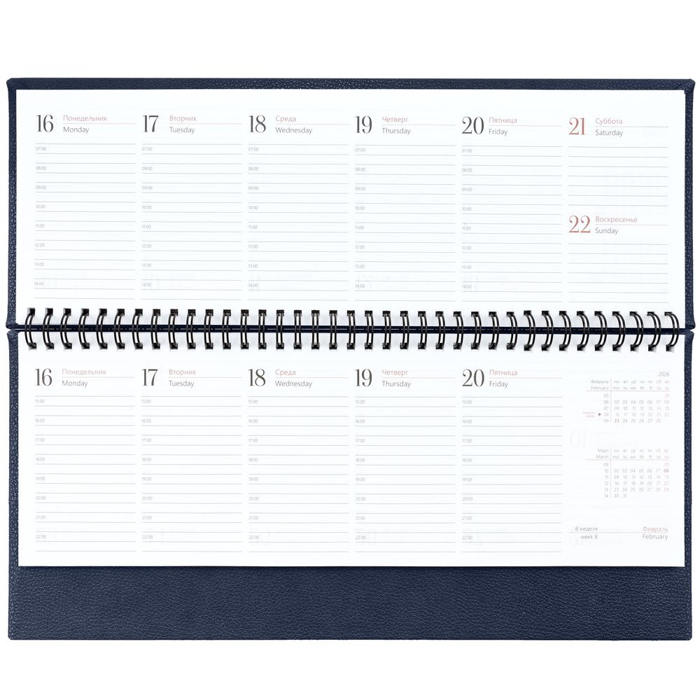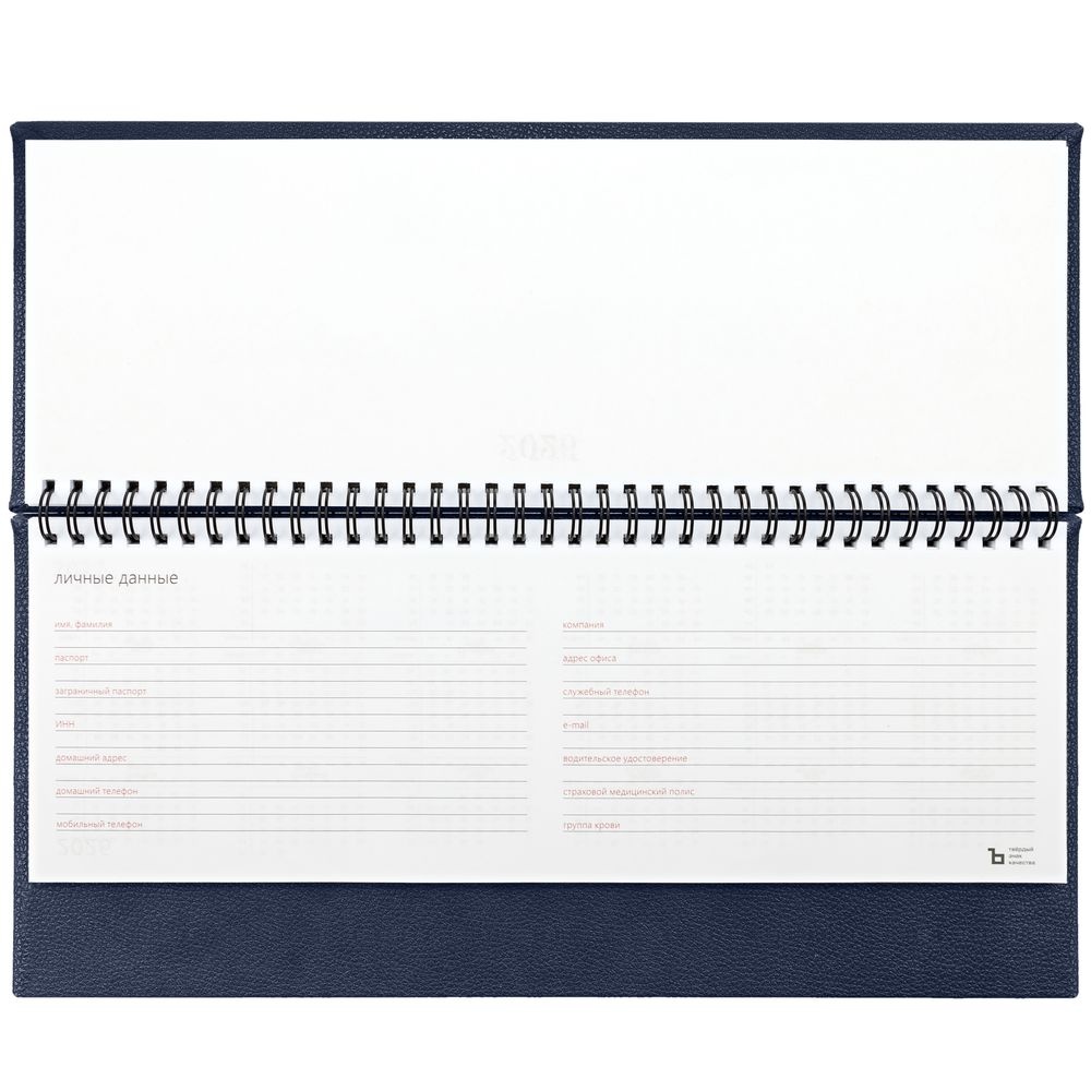 Планинг с твердой обложкой с поролоном, выполнен из материала La Fite, темно-синий ХХ.Блок 944:Кол-во страниц — 128;Бумага — белая, плотность 70 г/м?.