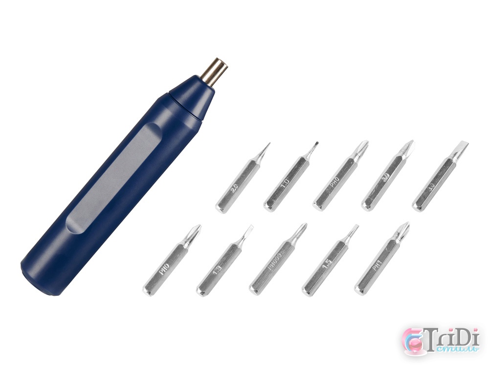 Отвертка-ручка Drill это универсальная отвертка с сменными битами. Благодаря форме корпуса идеально лежит в руке. Отвертка легкая и занимает мало места. Выдвижной механический контейнер бит позволяет хранить в себе весь набор из 10 сменных бит. Ручка инструмента изготовлена из пластика, биты – из нержавеющей стали.