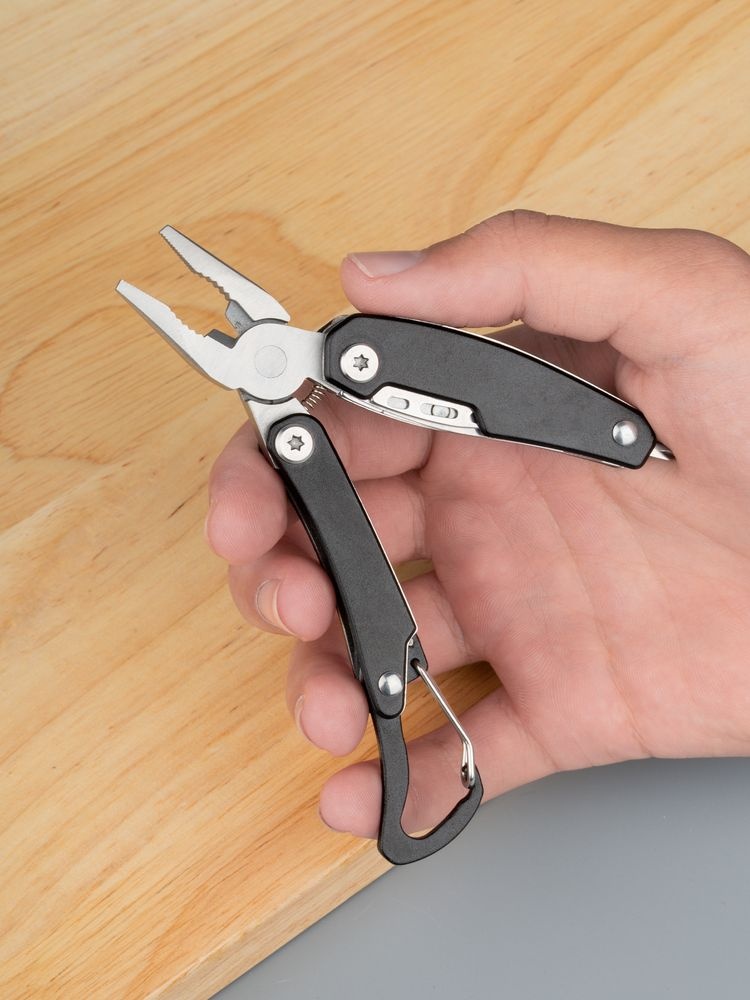 Мультитул-плоскогубцы Fixer выручит во многих бытовых ситуациях, ведь в его рукоятках прячется сразу несколько базовых инструментов под разные задачи.Благодаря компактности его удобно брать с собой — Fixer легко станет постоянным спутником в путешествиях и походах, будет просто незаменим и в повседневной жизни. Это прекрасный подарок для любителей активного отдыха, туристов и всех, кто ценит надежность и функциональность.Алюминиевая рукоятка под гравировку делает мультитул не только функциональным, но и стильным аксессуаром.Fixer. Выручит и все исправит.Многофункциональный инструмент с 6 функциями:плоскогубцы;кусачки;нож;открывалка;крестовая отвертка;карабин.Изготовлен из нержавеющей стали, что гарантирует долговечность и надежность.