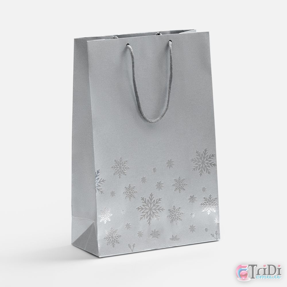Пакет из бумаги Galaxy Metallic (TPG) плотностью 120 г/м? с тиснением серебристой фольгой.Выдерживает вес до 2 кг.