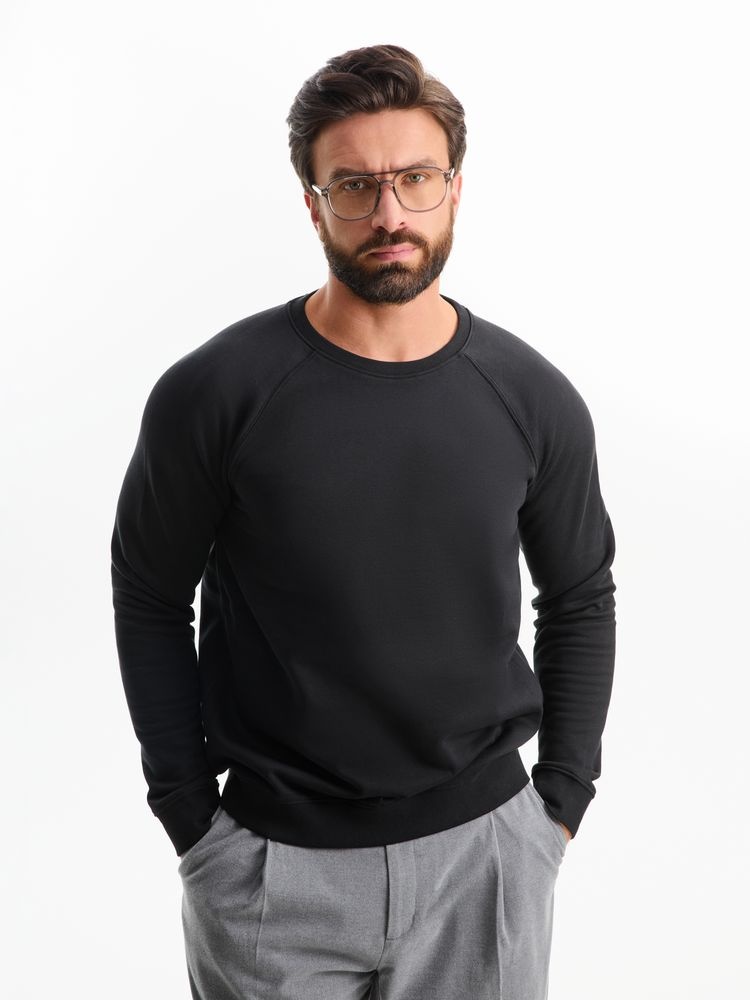 Свитшот унисекс из органического хлопка. Лейбл производителя в боковом шве изнутри, в шве горловины — только бирка с размером, что позволяет удобно нанести свой логотип.