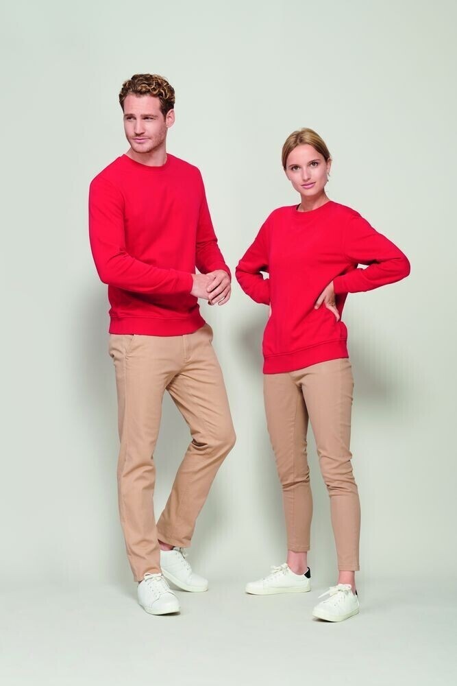 Свитшот унисекс из органического хлопка с круглым вырезом и втачным рукавом. Лейбл производителя в боковом шве изнутри, в шве горловины — только бирка с размером, что позволяет вам нанести свой логотип.