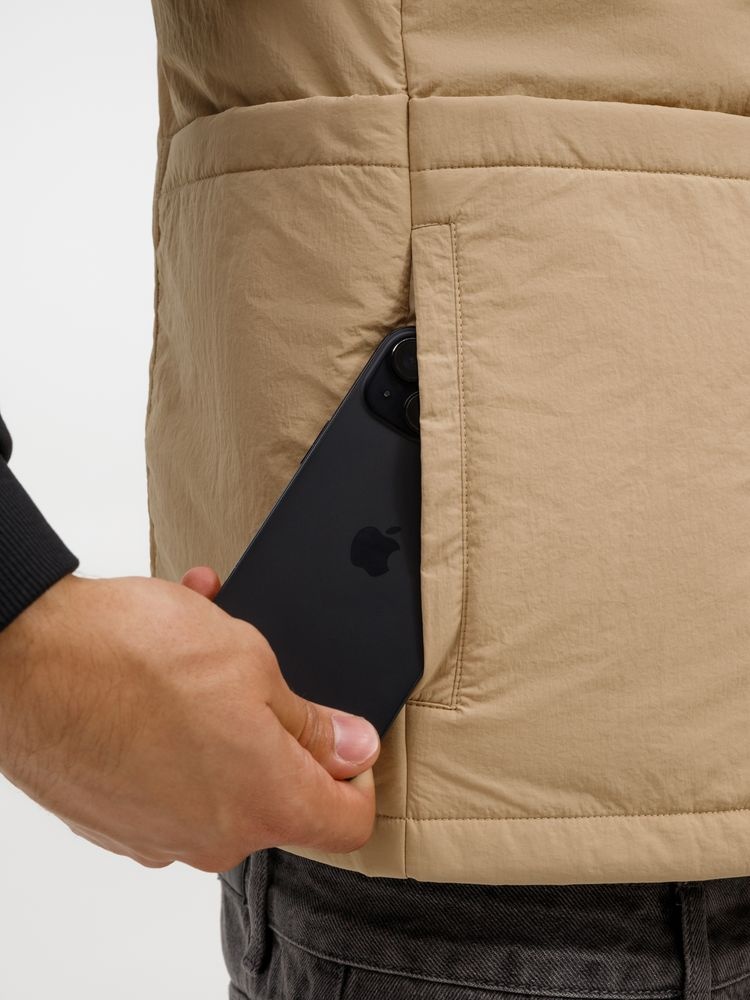 Veter: Невесомое тепло. Коллекция верхней одежды, что легко согревает и обволакивает, как теплый и ласковый ветер, и в то же время ветра совсем не боится. Жилет из нейлона с текстурой мятого шелка создает приятный микроклимат, в котором воздушность сочетается с комфортной терморегуляцией. Функциональность в деталях: 8 карманов для маневренности в городе, кнопки, подчиняющиеся движению пальца. Выберите свой лаконичный оттенок, который станет словно второй кожей в любой ситуации.Жилет унисекс Veter прямого кроя из нейлона.Матовая ткань с эффектом мятого шелкаЦентральная застежка — металлические кнопки серебристого цвета6 карманов на лицевой стороне куртки: два спереди и два сзади с вертикальным входом и 2 прорезных кармана с листочкой 2 потайных кармана на молнииДля удобства нанесения логотипа на подкладке изделия предусмотрена потайная молния по низу изделияПоставляется в индивидуальном фирменном пакете zip-lock с ручками.Таблица размеров, смXS/S44-46M/L48-50XL/2XL52-543XL/4XL58-60A59636771B667076,880Допускаются отклонения в 5% от указанных параметров по размеру и цвету