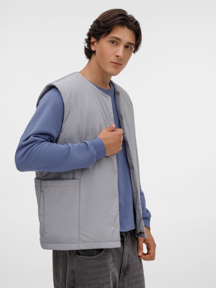Veter: Невесомое тепло. Коллекция верхней одежды, что легко согревает и обволакивает, как теплый и ласковый ветер, и в то же время ветра совсем не боится. Жилет из нейлона с текстурой мятого шелка создает приятный микроклимат, в котором воздушность сочетается с комфортной терморегуляцией. Функциональность в деталях: 8 карманов для маневренности в городе, кнопки, подчиняющиеся движению пальца. Выберите свой лаконичный оттенок, который станет словно второй кожей в любой ситуации.Жилет унисекс Veter прямого кроя из нейлона.Матовая ткань с эффектом мятого шелкаЦентральная застежка — металлические кнопки серебристого цвета6 карманов на лицевой стороне куртки: два спереди и два сзади с вертикальным входом и 2 прорезных кармана с листочкой 2 потайных кармана на молнииДля удобства нанесения логотипа на подкладке изделия предусмотрена потайная молния по низу изделияПоставляется в индивидуальном фирменном пакете zip-lock с ручками.Таблица размеров, смXS/S44-46M/L48-50XL/2XL52-543XL/4XL58-60A59636771B667076,880Допускаются отклонения в 5% от указанных параметров по размеру и цвету