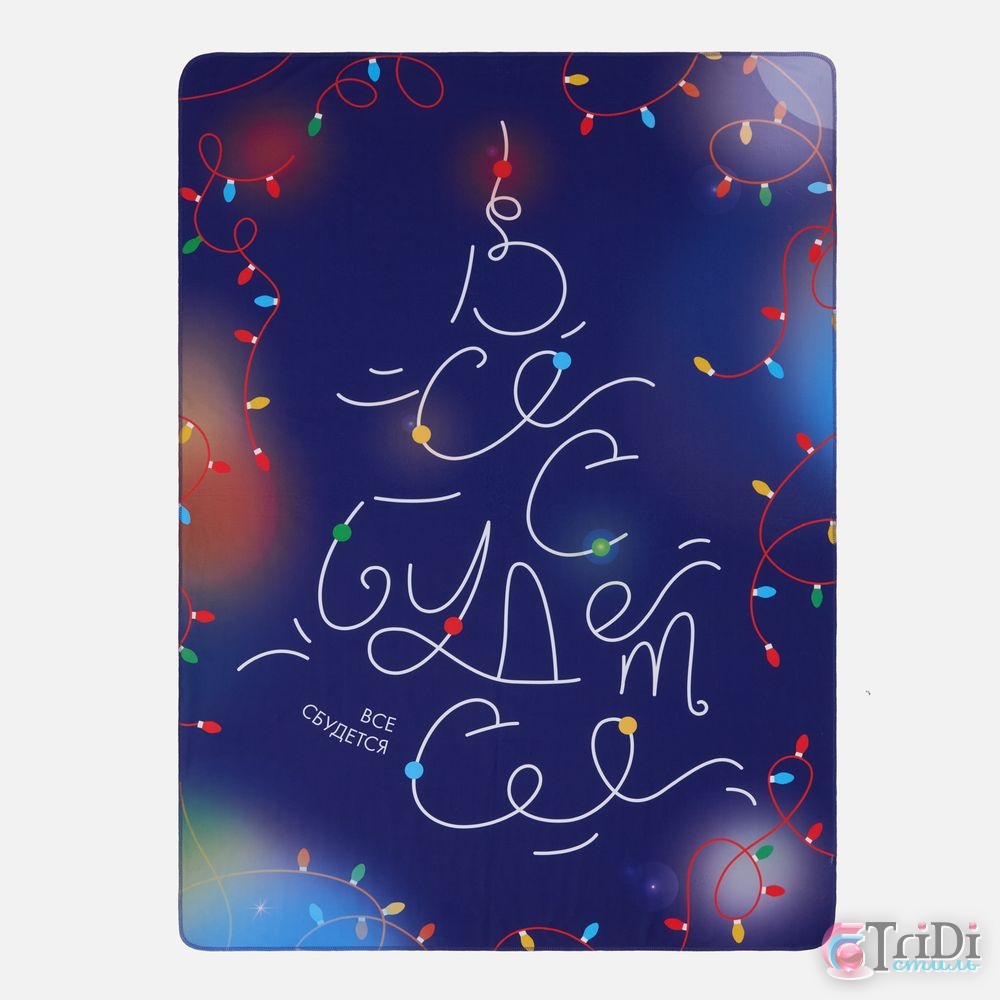 Праздничный плед-пожелание: лаконичное и воодушевляющее. Все сбудется! Стоит только загадать самое главное и стремиться к своей заветной мечте. А Вселенная подскажет, обнимет и согреет — прямо как этот красочный мягкий плед, словно по-настоящему мерцающий яркими огоньками.Плед изготовлен из мягкого плотного флиса с высоким качеством печати. Благодаря износостойкости материала плед не потеряет свой цвет и форму после множества стирок.Плед упакован в полиэтиленовый пакет с липким краем.