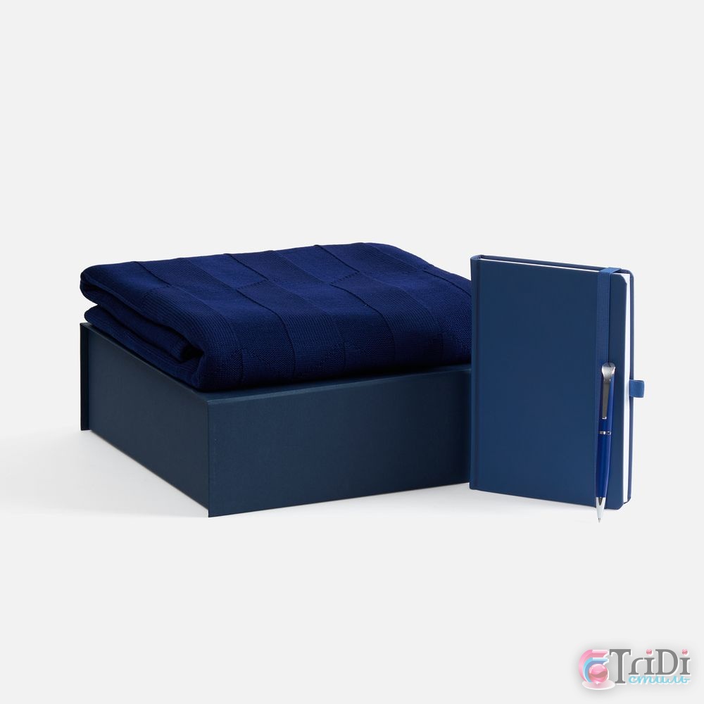 Однотонный набор с основной канцелярией и пледом — классика жанра в уютном исполнении. С компактным ежедневником будет удобно делать заметки в любое время — благодаря петельке для ручки любимый пишущий инструмент будет всегда под рукой. А изысканный акриловый плед с геометрическим узором позволит выразить самые теплые пожелания и ддобавит плавных линий в интерьер.
