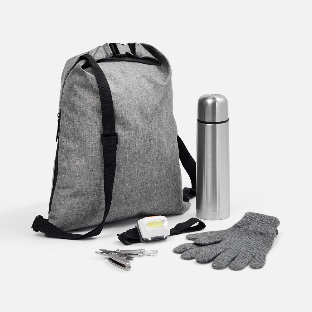 Материал | перчатки - 50% шерсть, 50% акрил; фонарь - пластик; мультитул - нержавеющая сталь, алюминий; термос - нержавеющая сталь, 304 внутри, 201 снаружи; пластик; рюкзак - полиэстер, 300D |