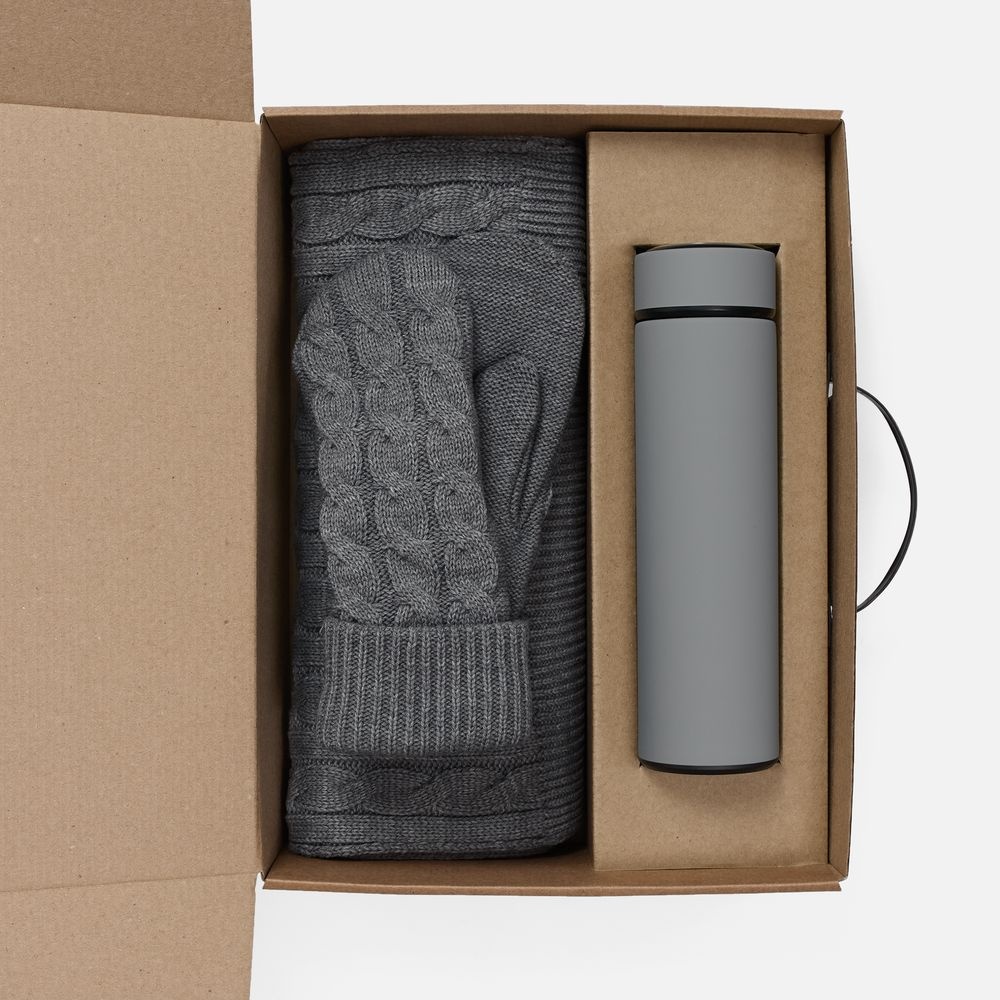 Материал | шарф, варежки - акрил 100%; термос - нержавеющая сталь, 304; покрытие софт-тач; коробка - микрогофрокартон |