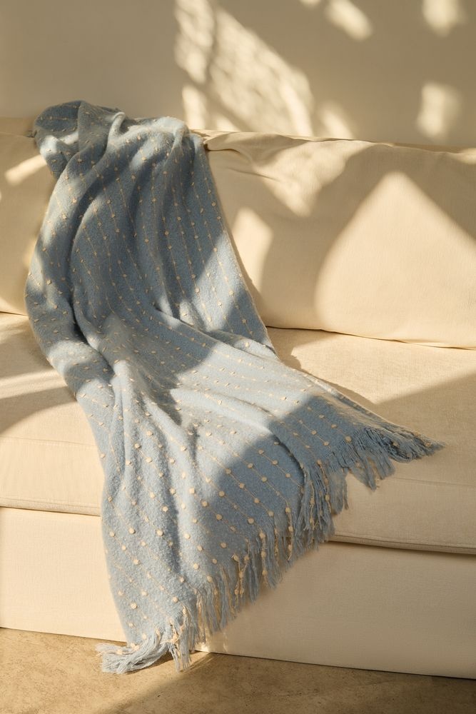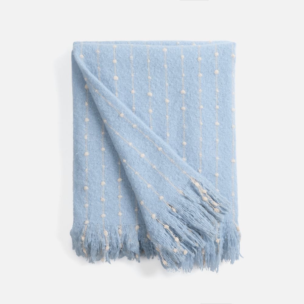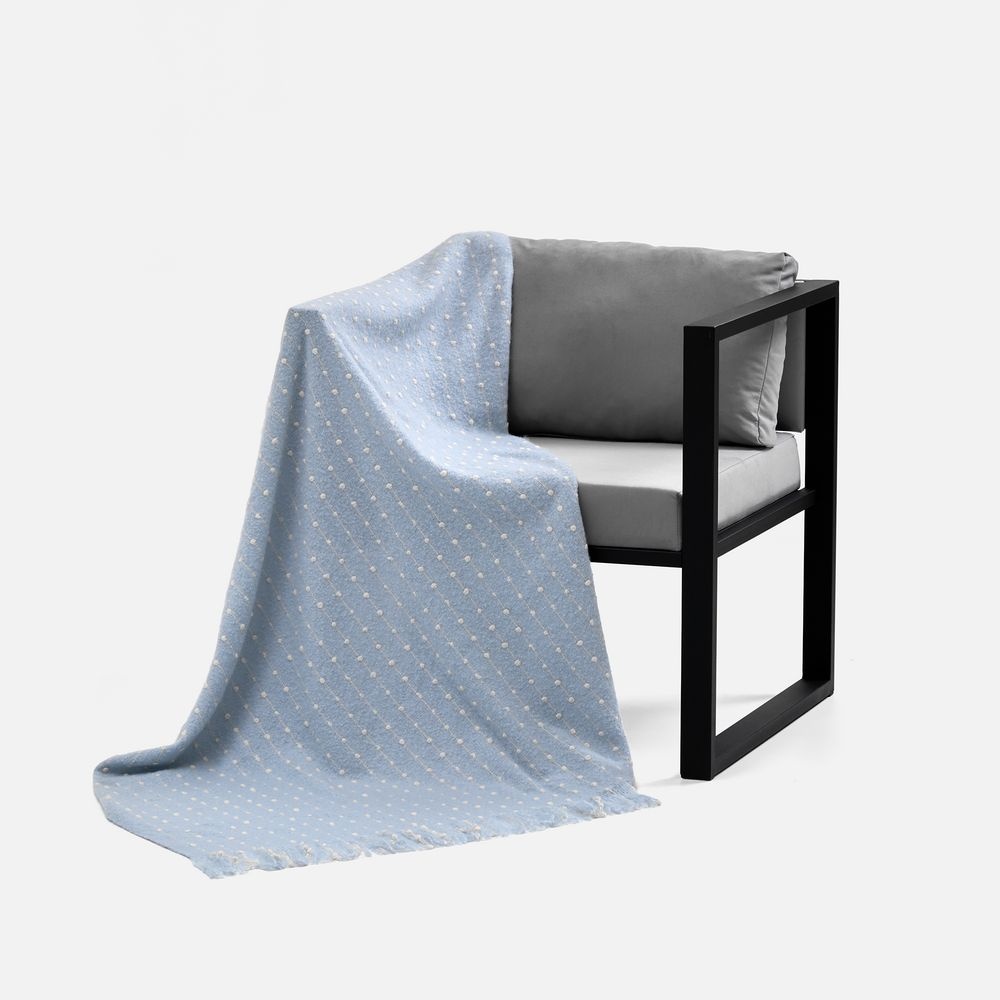 Плед Laforet — это нежность в каждом прикосновении!Изысканный плед небесно-голубого оттенка покоряет своим дизайном с первого взгляда. Особая текстура выпуклого узора в точку делает изделие не только визуально привлекательным, но и невероятно приятным на ощупь. Изящный пунктир, плавно переходящий на декоративную бахрому, придает пледу неповторимый шарм и элегантность.Плед Laforet отличается практичностью в использовании и будет долго радовать своим первозданным видом: материал прекрасно сохраняет форму и цвет даже после множества стирок. Универсальность пледа позволяет ему гармонично вписаться в любой интерьер — от классической гостиной до современной спальни. Laforet. Доступная роскошь.