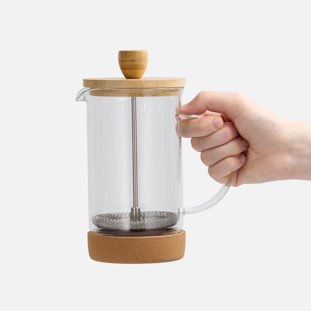 С френч-прессом Morning Person энергию утра почувствует даже самый заядлый полуночник, раньше старательно избегающий ранних пробуждений!Просто оцените его изящный дизайн и продуманную функциональность: прозрачное боросиликатное стекло позволяет легко контролировать процесс заваривания, а натуральные деревянная крышка и пробковая подставкадобавляют стиля, практичности и экологичности. Так появится приятный ритуал, который позволит встретить день с подлинной энергией и вдохновением. Пусть каждое утро будет наполнено свежестью вместе с Morning Person!Емкость 600 мл.Поставляется в индивидуальной транспортной коробке.