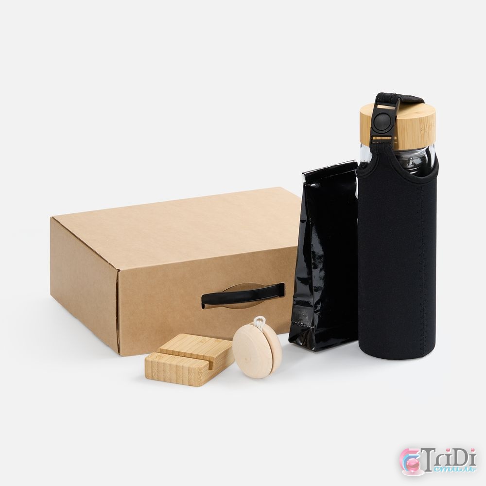 | Материал | дерево; бутылка - боросиликатное стекло, чехол - неопрен; ситечко - нержавеющая сталь; крышка - бамбук, пластик; подставка - бамбук; игрушка-антистресс - дерево; коробка - микрогофрокартон |