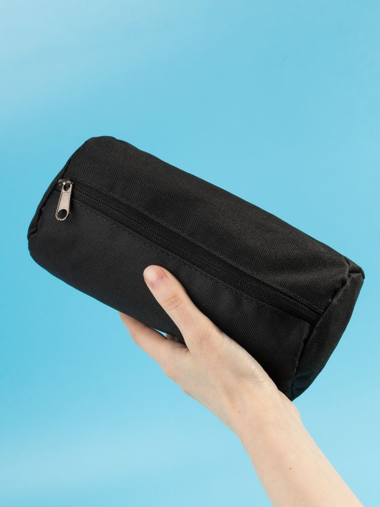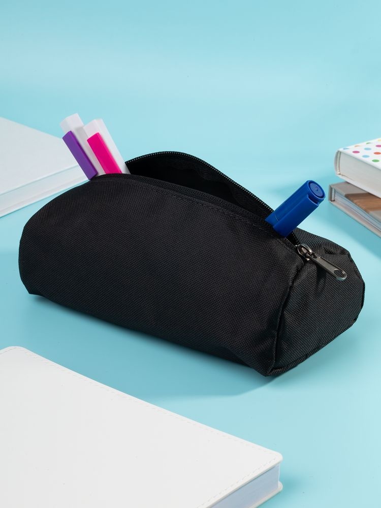 Пенал полукруглой формы с одним отделением на молнии.Способ обработки швов: окантовочная лента.