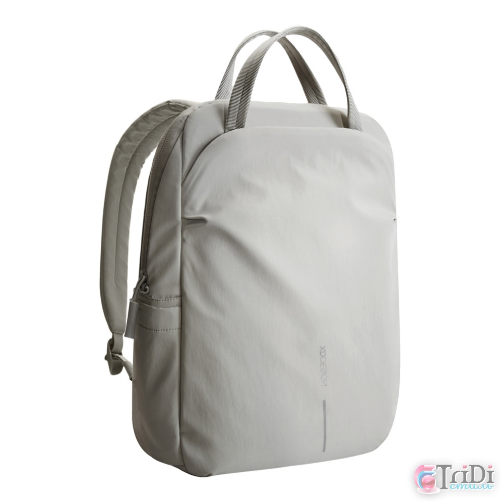 Рюкзак Soft Tote нидерландского бренда XD Design создан для комфорта в повседневной жизни и путешествиях. Благодаря надежной защите от краж и застежке-молнии ваши вещи всегда будут в безопасности. Продуман до мелочей: в рюкзаке предусмотрено 11 мест хранения, чтобы даже небольшие аксессуары не пришлось долго искать. Минималистичная внешняя отделка выполнена из прочного и легкого переработанного нейлона, а подкладка оснащена уникальной технологией AWARE™, что подтверждает подлинность материалов. Изделие на 42,64% состоит из переработанного сырья. Объем 15 л. Зарегистрированный дизайн®