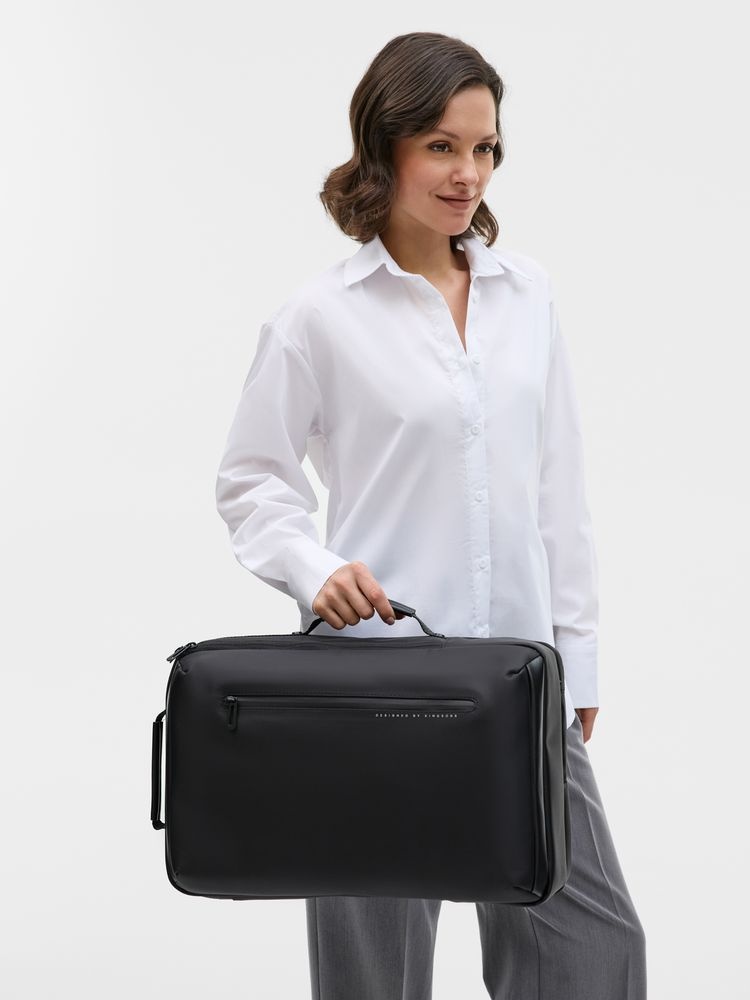 - Два отделения на молнии: первое — для документов с усиленным карманом под ноутбук, второе — объемное отделение для вещей с панелью?органайзером и внутренним карманом на молнии