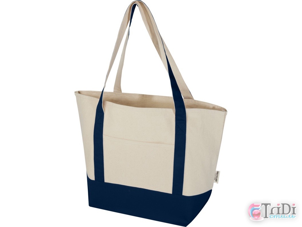 Sam эко- сумка из переработанного хлопка, сертифицированного согласно GRS, плотностью 320 г/м? - Темно - синий / Натуральный