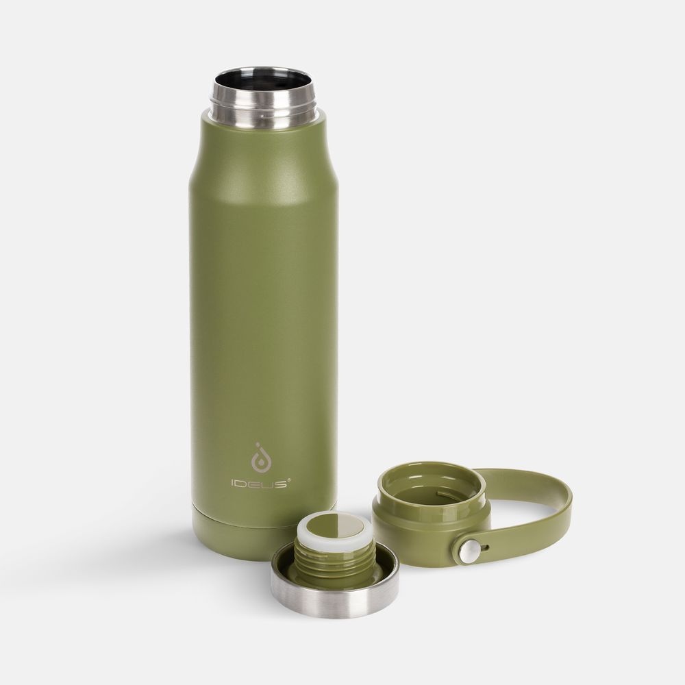 Термобутылка Tateyama — это идеальное сочетание привлекательного дизайна, экологичных материалов и продуманной конструкции. Отличительной особенностью бутылки является составная крышка: одна ее часть представляет собой завинчивающуюся пробку из нержавеющей стали, а другая — пластиковый фильтр с отверстиями для питья, который позволит насладиться напитком, но не пропустит лед или чайные листья. Освежающая холодная вода во время длительной тренировки или согревающий горячий напиток во время зимней прогулки — с термобутылкой Tateyama их одинаково удобно пить.Емкость 710 мл.Конструкция с двойными стенками и вакуумной изоляцией сохраняет содержимое холодным до 24 часов, горячим — до 12 часов100% герметичная закручивающаяся крышка с силиконовым уплотнительным кольцомСъемный фильтр для удержания льдаНе содержит бисфенол АРучка для переноски