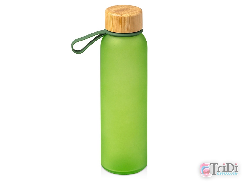Полупрозрачная бутылка из переработанного стекла. Бамбуковая крышка с держателем. Объём: 500 мл. Поставляется в индивидуальной коробке.