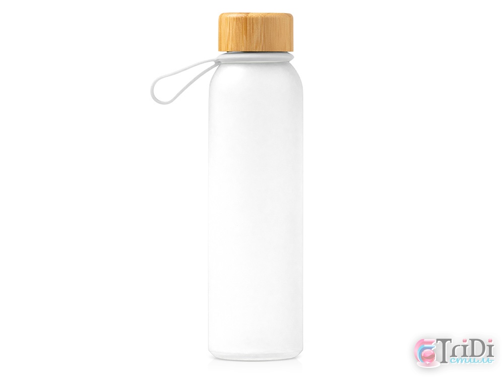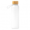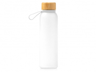 Полупрозрачная бутылка из переработанного стекла. Бамбуковая крышка с держателем. Объём: 500 мл. Поставляется в индивидуальной коробке.